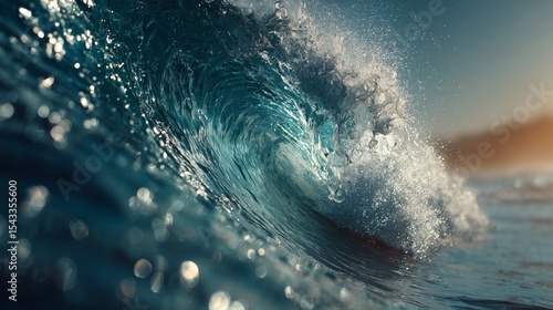 ultra cinematic closeup of ocean wave breaking with dramatic lighting and detail