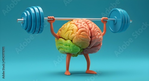 Strong colorful brain mascot lifting barbell signifying autism ADHD neurodiversity empowerment and therapy cognitive training