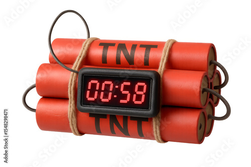 Tnt dynamite bomb explosives with a digital timer counting down on transparent background