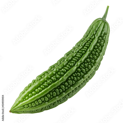 Isolated Green Bitter Gourd Vegetable Showing Texture on White Background