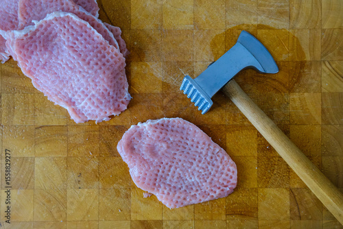 Surowy kotlet schabowy rozbity