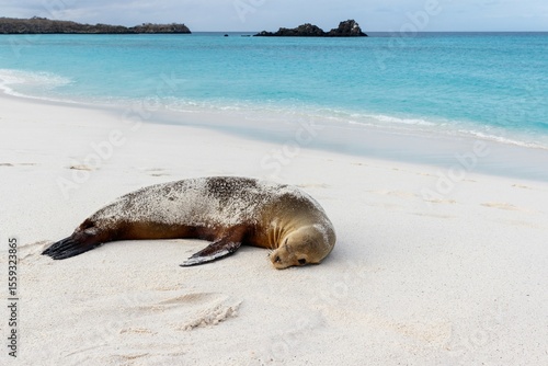 Sandy beach at Gardner Bay on Espanola Island, Galapagos National park, Ecuador.