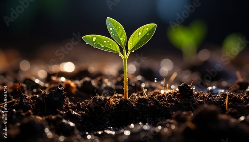 Tallo joven con hojas verdes brotando de la tierra, imagen vibrante para representar resiliencia, crecimiento y renovación natural