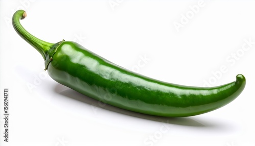 Vibrant green jalape?o pepper with a curved stem on a white background