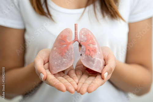 Lung Health in Gentle Hands: A person tenderly cradles a lung model, a symbol of respiratory wellness, between their caring hands.