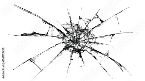 Abstract shattered glass with radial cracks overlay creates a visual effect of damage and fragility.