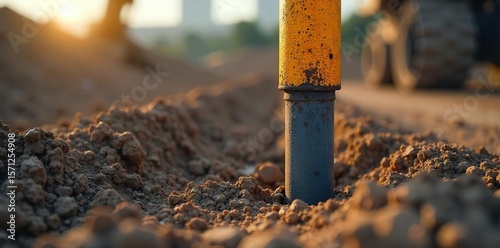 Sturdy Steel Safety Pile Driven Deep into Ground, Providing Robust Soil Stabilization for Construction and Infrastructure Projects