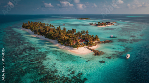 Czyste, turkusowe wody otaczają idylliczną, zieloną wyspę z białymi plażami i palmami. Idealne miejsce na ucieczkę od zgiełku.