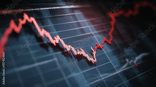 Close-up of financial chart with downward trending line symbolizing Federal Reserve rate cuts, economic recession concept, stock market volatility and investment risk analysis.