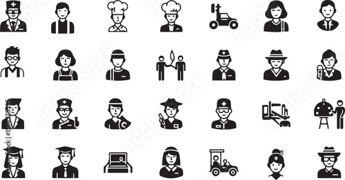Collection of Diverse Profession Icons doctor chef
