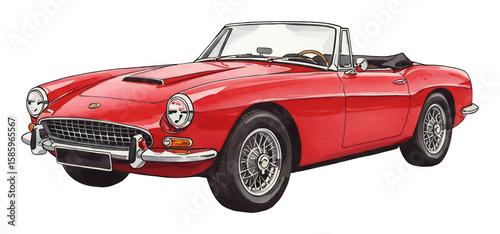 鮮やか赤のクラシックカー、滑らかな曲線美しい。