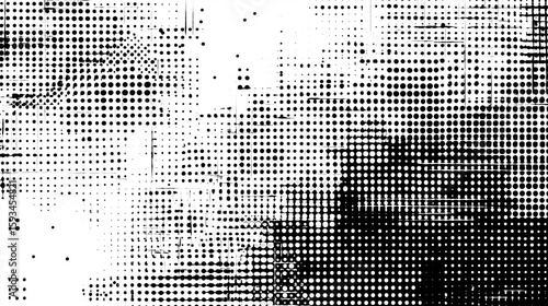 ドットの密度と大きさが滑らかにグラデーションするモノクロ抽象パターン。レトロでクールな印象を与えるグラフィック素材。