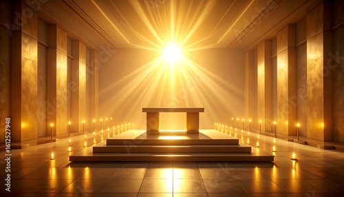 Illuminated altar with radiant light in a serene and spiritual space