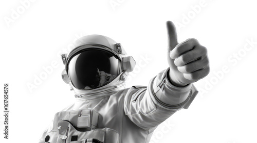 Astronaut Thumb Up: An astronaut, encased in their spacesuit, gives a confident thumbs-up, ready to embark on a cosmic journey, symbolizing positivity and achievement.