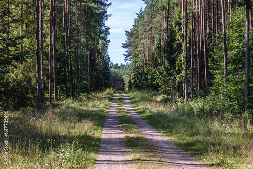 Dirt road in forests of Kashubian Landscape Park in Poland