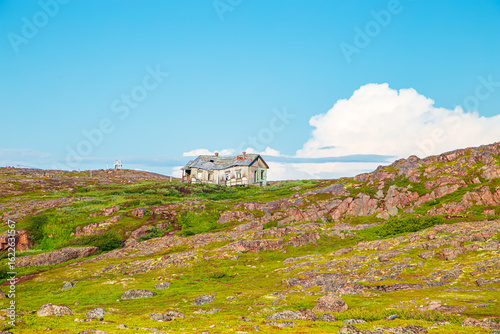 Old abandoned house in the Teriberka Nature Park on the shore of the Barents Sea.