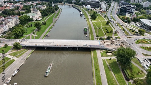 Rzeka Wisła, Kraków, Małopolska, Polska, Europa, zakole, most, Grunwaldzki, bulwary,