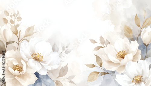 Delicate White and Beige Floral Watercolor Frame with Dusty Blue Accents