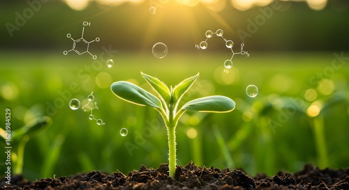 Emerging seedling illuminated with molecular structures representing bioengineering innovation