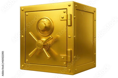 Gleaming golden safe featuring combination lock, symbolizing financial protection and secure wealth management against transparent backdrop