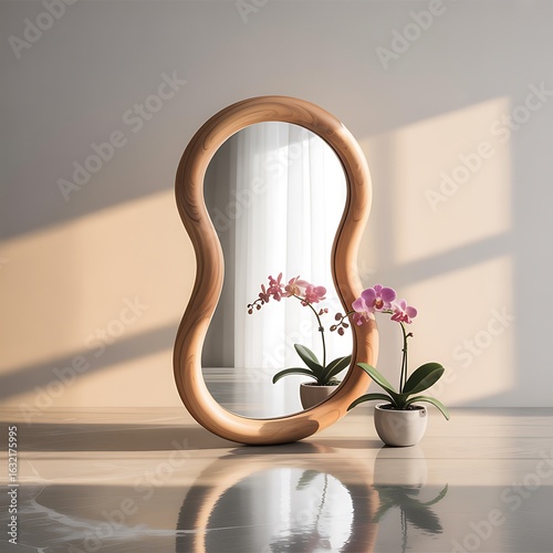 Organic Wood Frame Mirror Reflecting Pink Orchids organic shape