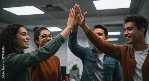 Celebración del Éxito en la Oficina: ¡Choca esos cinco para el Equipo de Ventas Hispano!