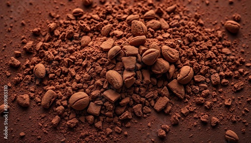 Dark chocolate background, rich brown texture, cocoa powder dusting, cocoa, chocolate background