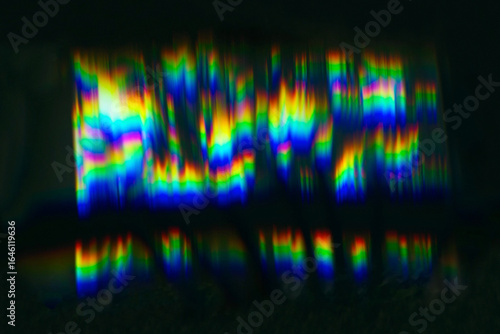 Colorful spectral patterns created by refraction of light through a prism, vibrating patterns.