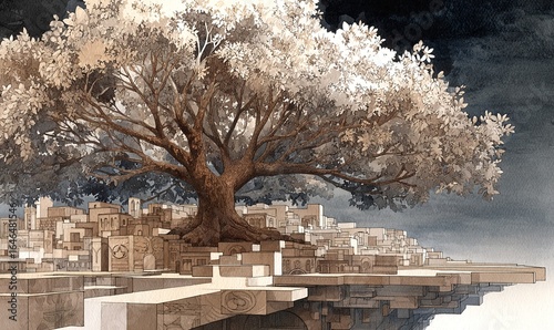 ÁRVORE CONTEMPLATIVA EM TONS DE AQUARELA
