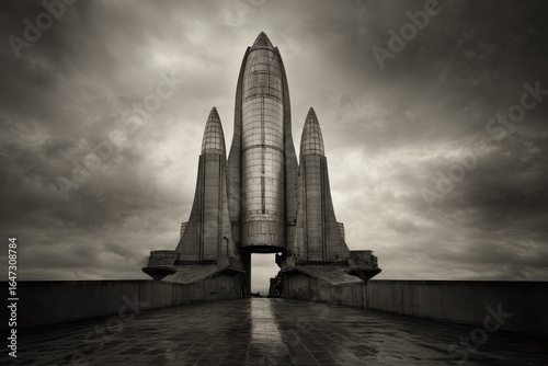 Monumental Space Shuttle Buran Under a Dramatic Sky, Monochrome Image