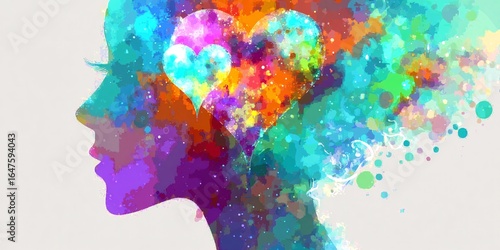 ABSTRAKCYJNY PORTRET KOBIETY Z SERCEM W GŁOWIE
