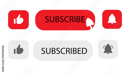 SUBSCRIBE, Subscribe, bell button and hand cursor. Red button subscribe to channel, blog. Social media