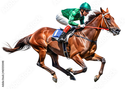 jockey and horse racing full isolated on white background PNG ,AI GENERATED