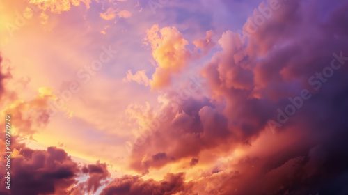 Dramatyczne niebo o zachodzie słońca w intensywnych barwach