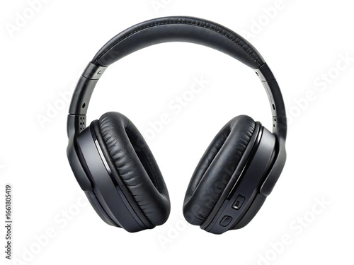 Black Wireless Headphones with Leather Cushions Isolated on White Background