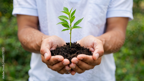 Młoda roślina trzymana w dłoniach — symbol wzrostu i ochrony natury