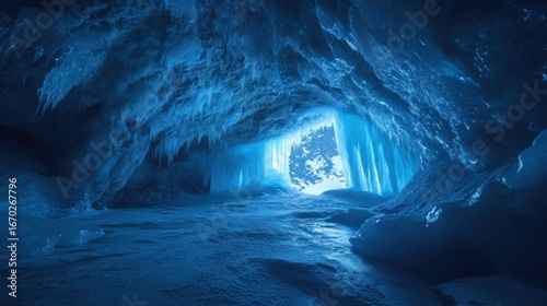 Glacier cave interior blue light