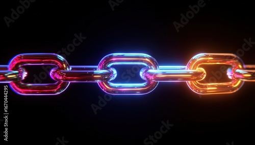 Neon chain links against black
