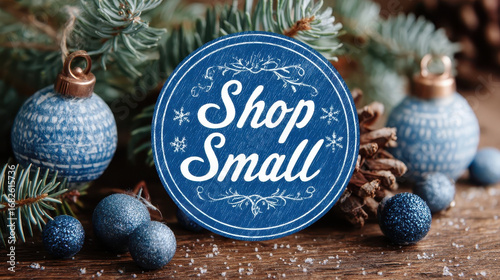Festive Christmas decorations and Shop Small sign promote holiday shopping at local businesses