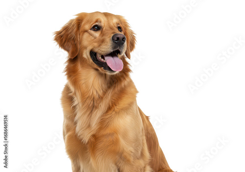 Golden retriever dog sitting and looking to the side isolated on transparent background