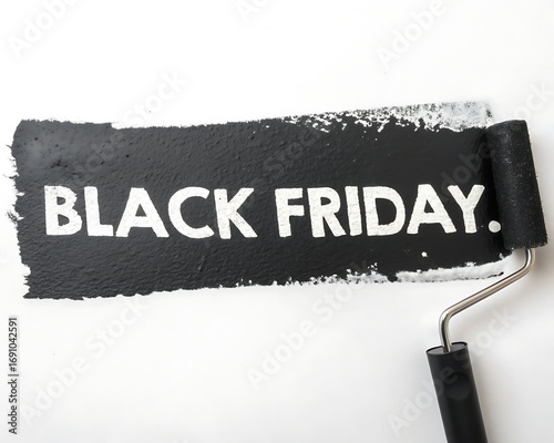 Black friday text painted with a roller brush on a white background, isolated on white background