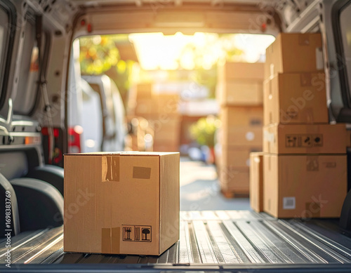 Paczki kurierskie w samochodzie busie - transport przesyłek