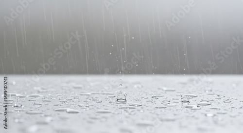 Pluie intense tombant doucement surface claire lumiere diffuse. AI Generated