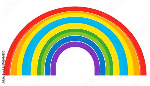 A vibrant rainbow arc, featuring a spectrum of colors, displays a cheerful and optimistic mood against a plain white background.