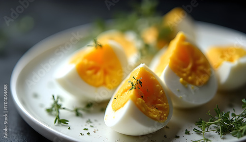 fried egg with bacon,egg isolated on white background, boiled egg cut in pieces,rich with protein,yolk of an egg is the yellow part in the middle, boiled eggs in plate