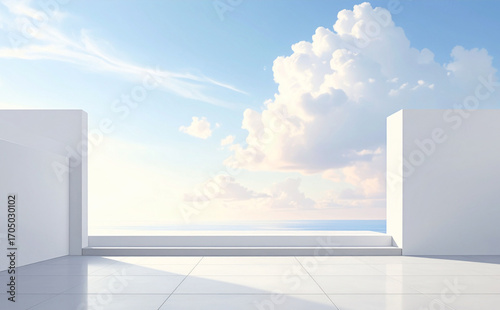 白い壁と青空が広がるシンプルで開放的な風景