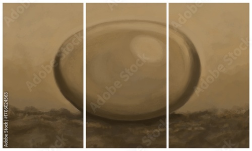 Modern interior triptych. The picture is painted by hand on a tablet.