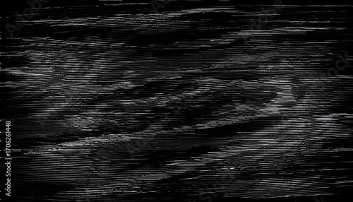 a dark background of vhs overlay effect black and white glitch pixels distort the television screen signal interference creates a chaotic digital texture