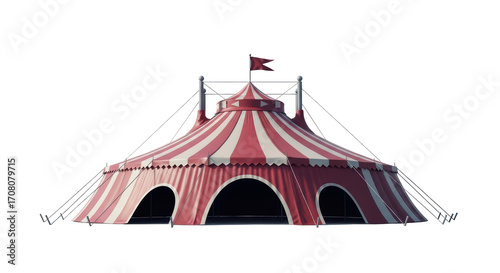 Isolated vintage red-and-white striped circus tent for entertainment, without background