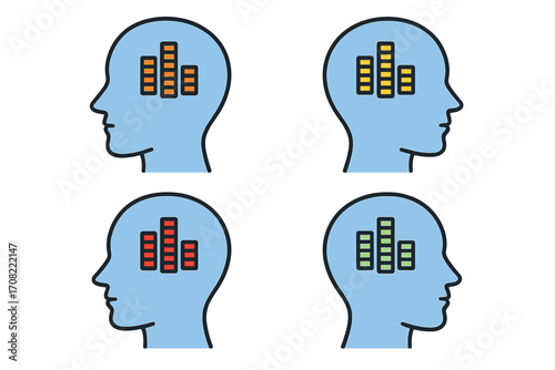 Human head silhouette with colorful pills inside brain concept, healthcare and medicine icon set, mental health visualization, pharmacy, treatment, medical illustration, transparent background
